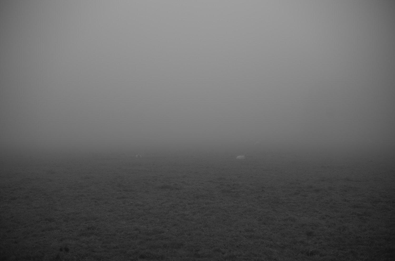 Der Nebel nimmt dem Ort seine Tiefe. Zwei Schafe liegen darin auf der Wiese, fast reglos. Sie harren aus, ohne Erwartung. Ich bleibe stehen und beobachte, warte auf etwas, das sich nicht verändern will. Irgendwann genügt mir dieser Zustand. Ich gehe weiter und nehme ihre Ruhe ein Stück mit.